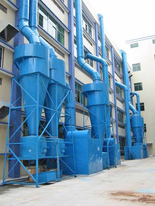 旋風除塵器: 該系列除塵器,為旁路室旋風除塵器,分為XLP/A型與XLP/B型兩種不同的構造形式。根據安裝位置,安裝形式又分為X型(吸出式)和Y型(壓入式)同時還分為左回旋(N型)和右回旋(S型)兩種。適用于各機械加工、冶金建材、礦山采掘的粉塵的中、粗凈化。XLP/A、XLP/B型旋風除塵器,分為上筒體,下錐體兩大部分。塵氣通過進塵口,切向進入旁路室造成較大壓力,順流進入筒體,產生巨大旋風,將粉塵顆粒離心降入錐體,凈氣通過排氣管排入大氣,除塵效率較高。